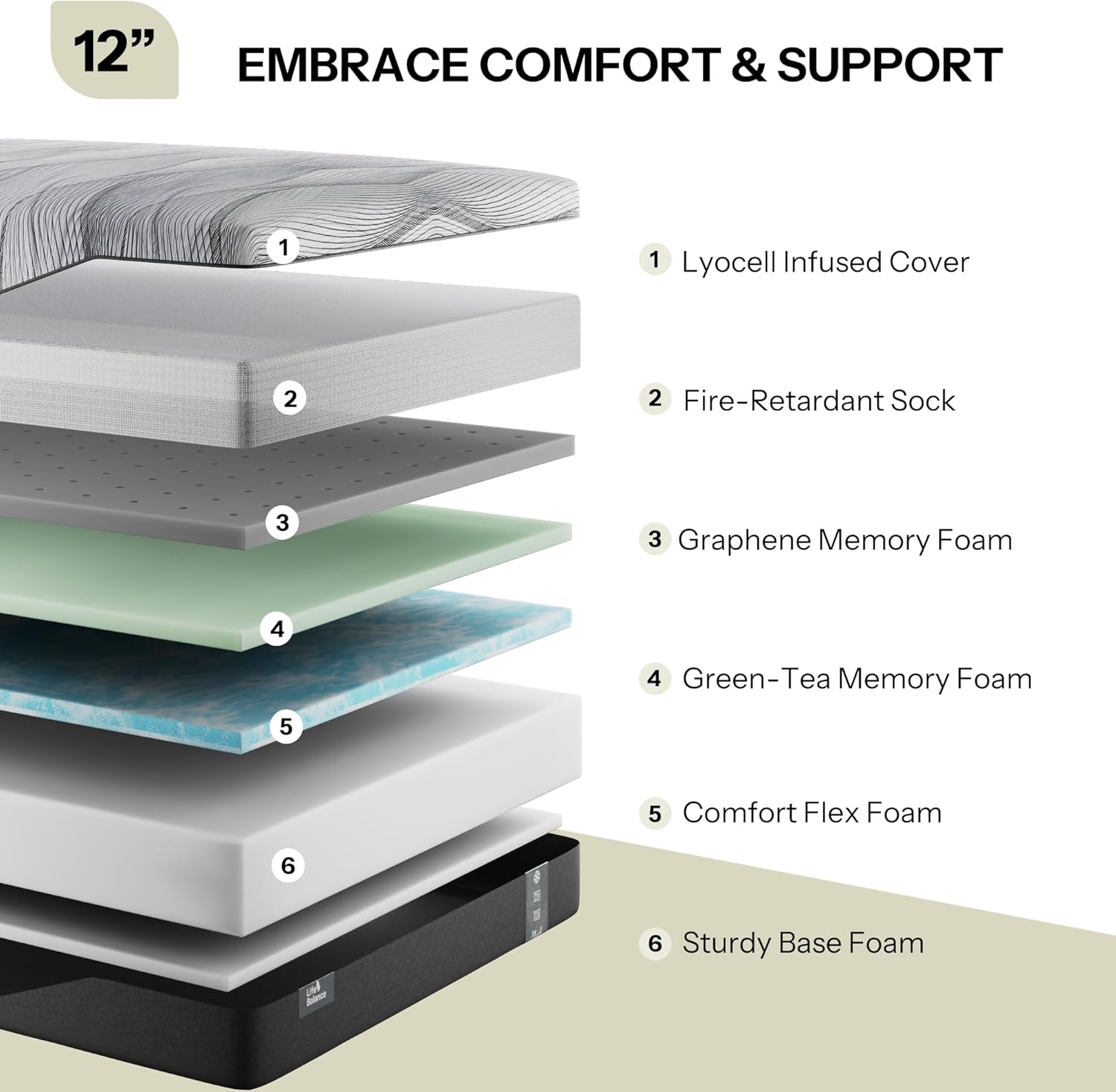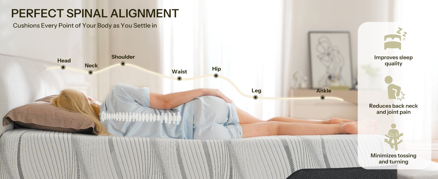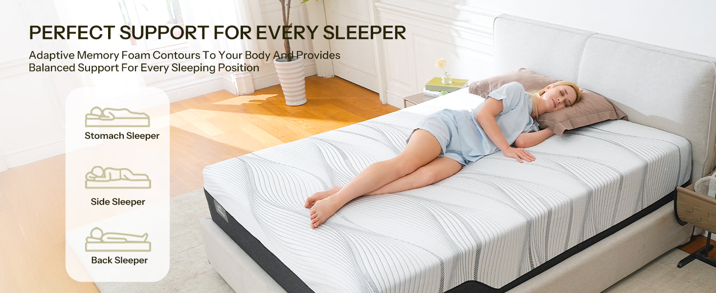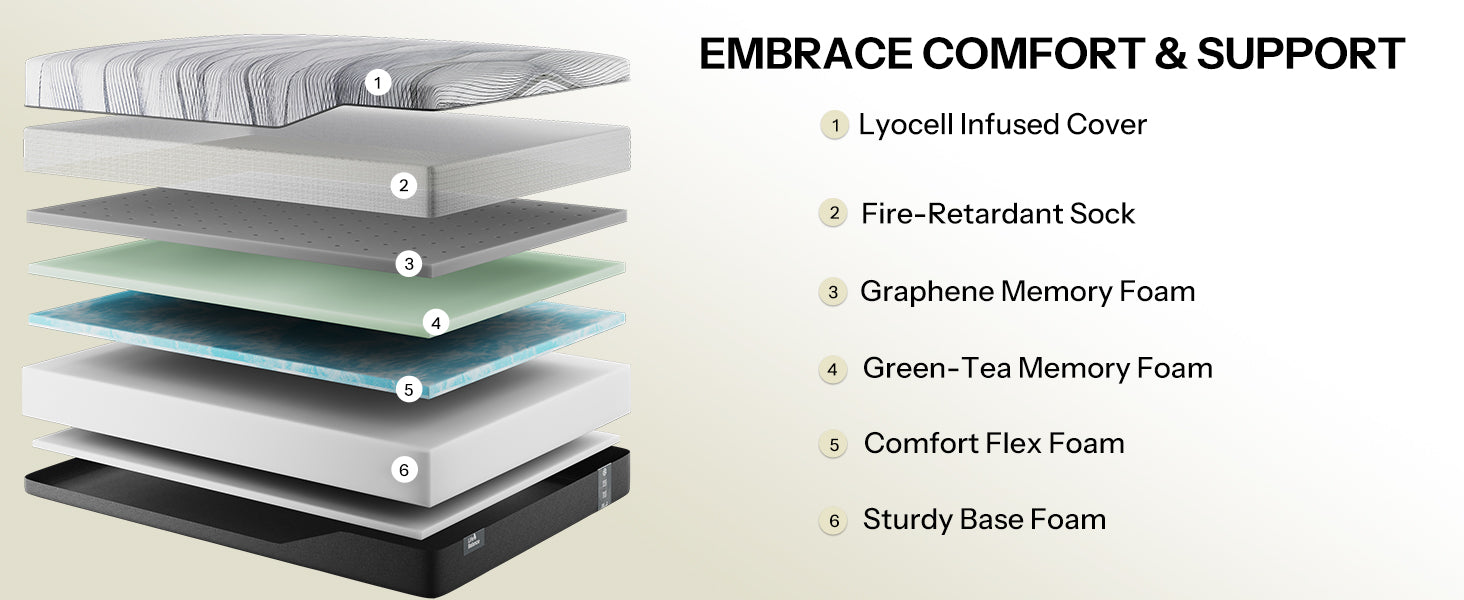 A plush, cooling memory foam mattress that soothes pressure points and aligns your spine from head to toe.