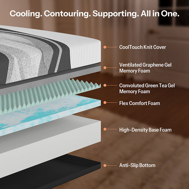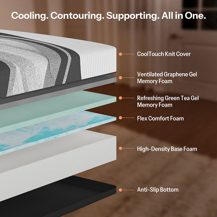 A cooling, contouring memory foam mattress that balances freshness, support, and pressure relief for all sleepers.