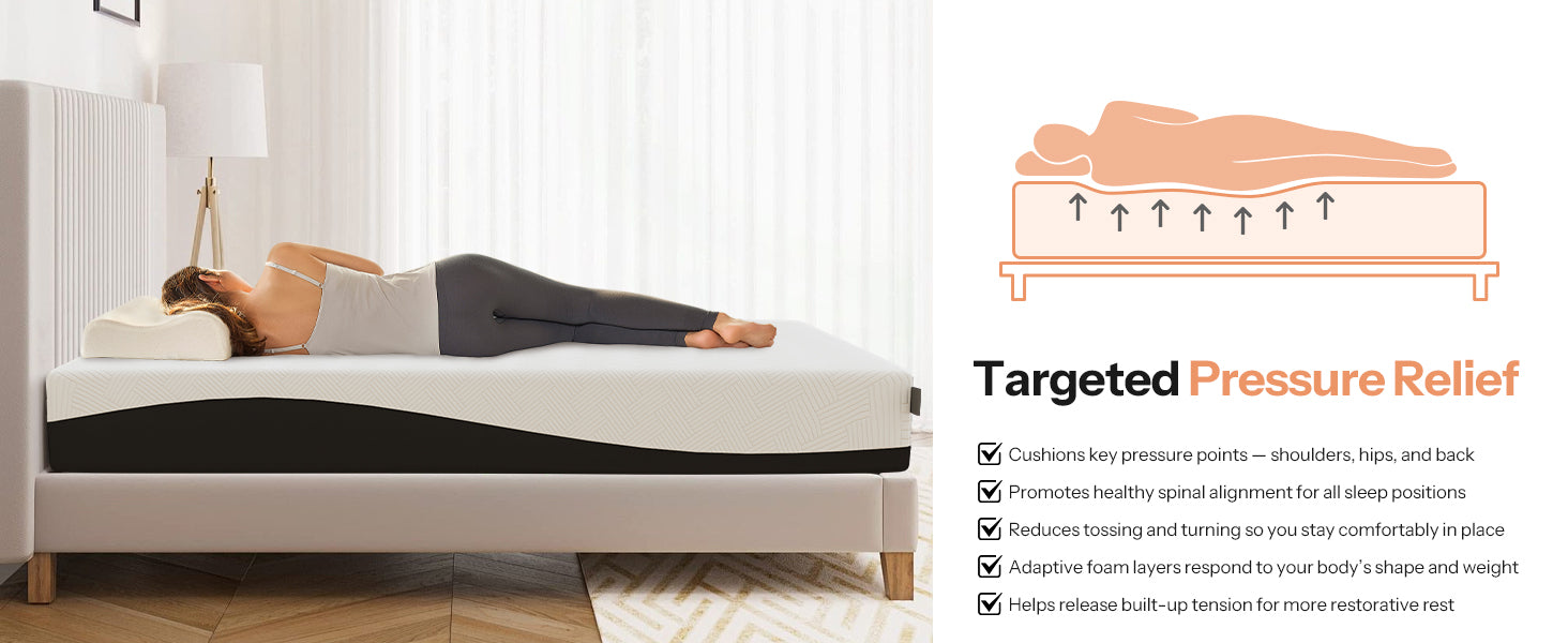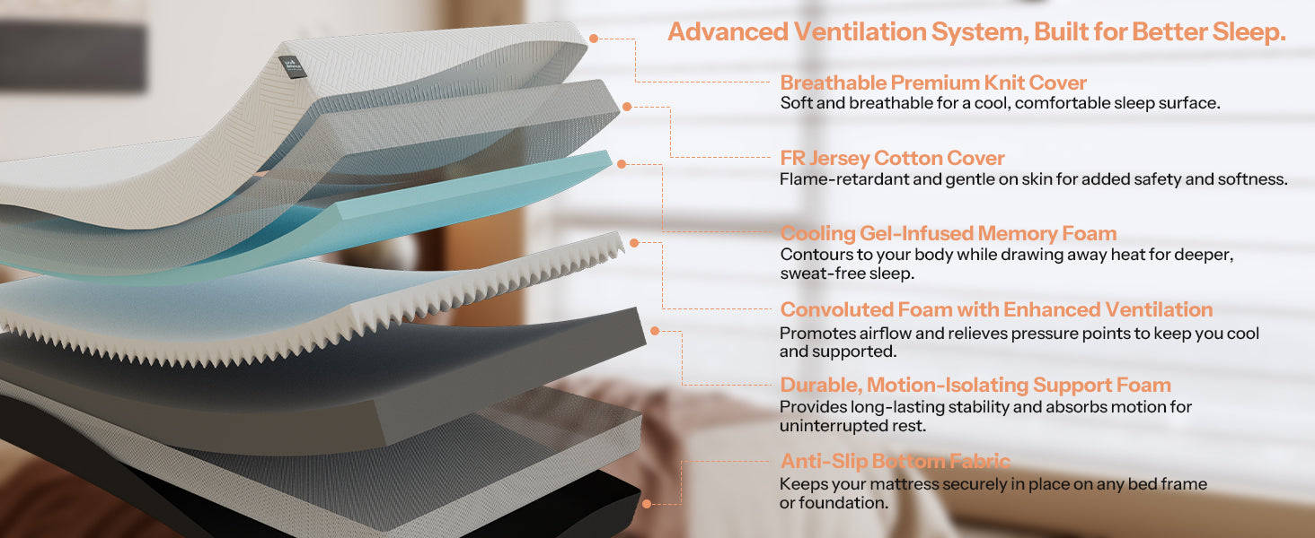 A breathable, triple-layer memory foam mattress with cooling comfort and adaptive support for all-night relief.