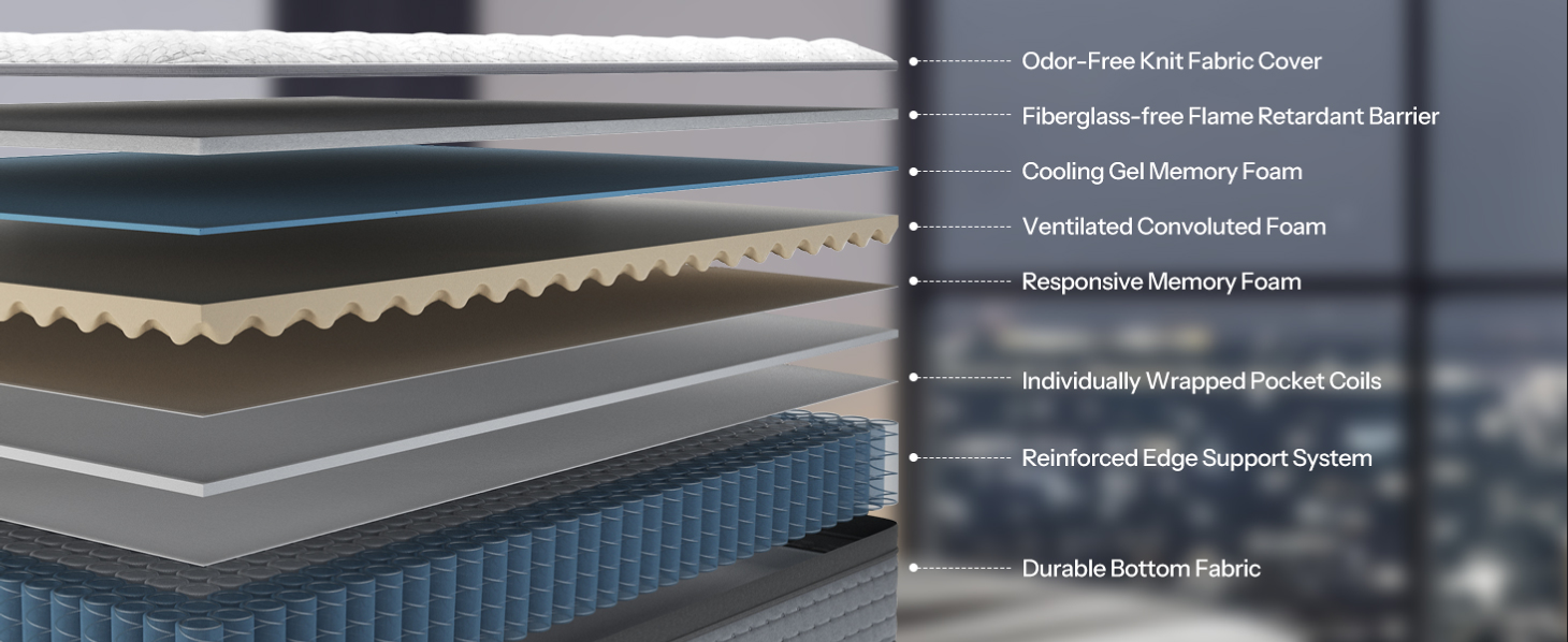 A breathable hybrid mattress with cooling comfort, responsive support, and edge-to-edge stability—ideal for balanced, restful sleep.